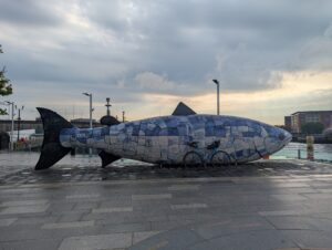 Even the roadworks on the main route couldn’t dampen the joy of riding safely along a major highway. Tucks and cars thundered past. I pressed on never worried if someone was going to cut me too close, because I was more than two metres from the roadway. I stopped a few moments in Rosslare. It has a lovely beach and a great view of the EuroPort with ferries docking. I didn’t want to delay, so I went to the port, where I waited in the sunshine in the queue for the ferry, knowing that my day was done and I’d be sleeping in Wales tonight.