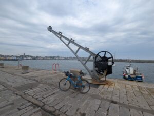 Down to Ballygarrett. I rode a few miles with a cyclist going the same way. He’s just back on a bike after a long time away from riding. He was on a hybrid he had in the shed, and is already talking about buying a lighter bike. We rode together down to Cahore. I stopped to look at the quay and watched the independent inshore rescue boat crew being put through their paces on Saturday morning training.