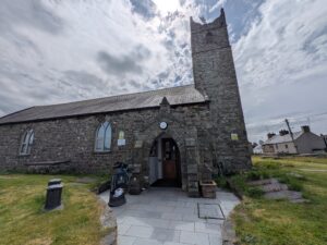 My new plan was to get a shift on, riding as much as possible in the dry. I couldn’t leave without visiting Aberdaron’s beautiful church.
