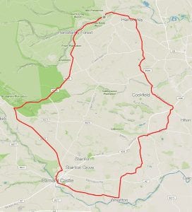 Descending into the Gaunless valley at Esperly, the farming landscape starts to include echoes of the area’s industrial heritage. A steep climb through Low Lands to High Lands and there are two miles of descent to enjoy before a one last climb up into Hamsterley village. A mile-long valedictory roll down to Bedburn and I’m back at Hamsterley Forest visitor centre.