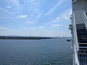 Unlike any other ferry crossing I’ve been on with the bike, on Stena Line at Cairnryan, cyclists use the foot passenger entrance, then wait to be escorted onto the vehicle deck.